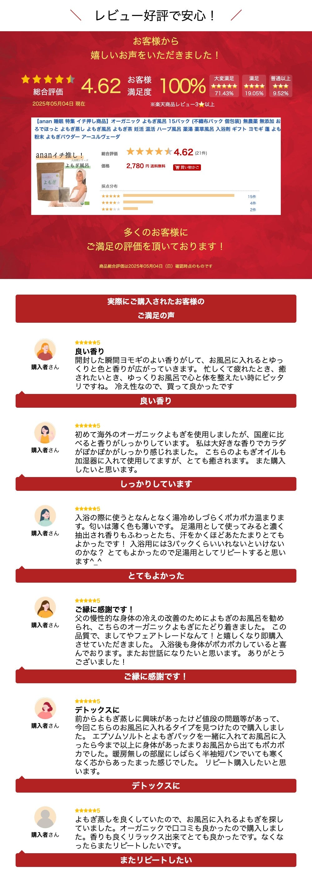 ・商品名 おふろでほっと オーガニックよもぎの入浴剤 ・原材料名 オーガニックよもぎ100% ・内容量 15pc(不織布パックにて小分け包装) ・保存方法 直射日光、高温多湿を避け冷暗所にて保存 ・販売者 ヤポネサウンド合同会社 東京都品川区南品川6-5-3
