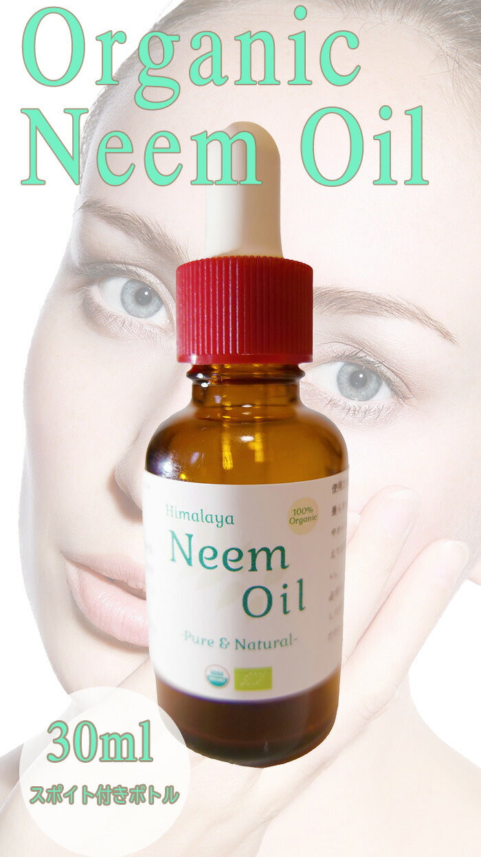 100%Organic Himalaya Neem Oil オーガニック ヒマラヤ ニーム オイル 30ml(スポイトキャップ付きボトル) Azadirachta Indica Oil 無農薬栽培 肌 保湿 アーユルヴェーダ ミラクルニーム サロン専売品 美容 敏感肌 アトピー ボディオイル マッサージオイル ハーブオイル