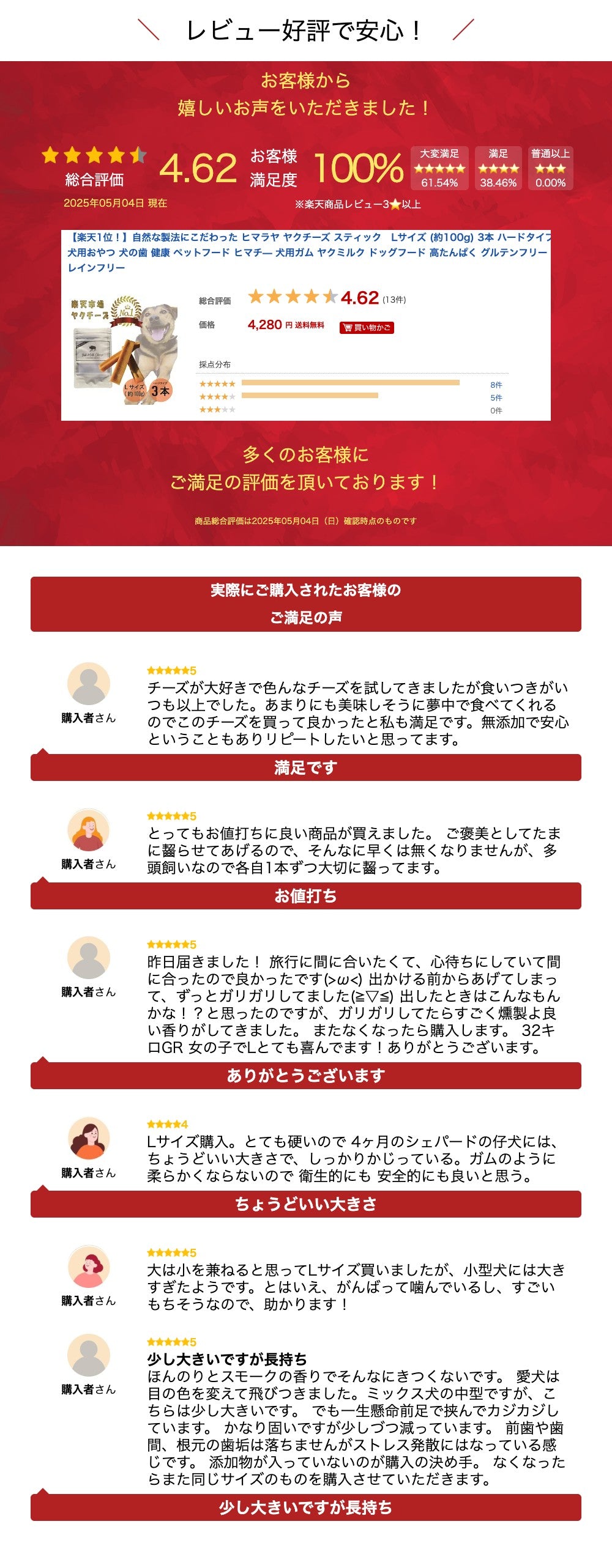 【楽天1位!】自然な製法にこだわった ヒマラヤ ヤクチーズ スティック Lサイズ (約100g) 3本 ハードタイプ 犬用おやつ 犬の歯 健康 ペットフード ヒマチ― 犬用ガム ヤクミルク ドッグフード 高たんぱく グルテンフリー グレインフリー