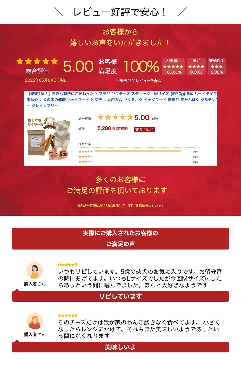 【楽天1位!】自然な製法にこだわった ヒマラヤ ヤクチーズ スティック Mサイズ (約70g) 5本 ハードタイプ 犬用おやつ 犬の歯の健康 ペットフード ヒマチ― 犬用ガム ヤクミルク ドッグフード 無添加 高たんぱく グルテンフリー グレインフリー