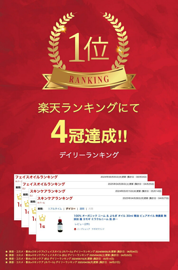 【スーパーセールポイント5倍!】100% オーガニック ニーム & よもぎ オイル 30ml 精油 ピュアオイル 無農薬 無添加 蓬 ヨモギ ミラクルニーム 肌 赤み 鎮静 美容 化粧水 美容液 乳液 クリーム 美容パック 石鹸 マッサージオイル 肌荒れ 敏感肌 自然派 スキンケア 人気