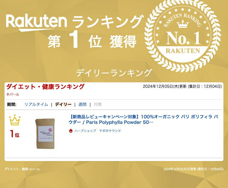 【新商品レビューキャンペーン対象】100%オーガニック パリ ポリフィラ パウダー / Paris Polyphylla Powder 50g アーユルヴェーダ ステロイドサポニン 漢方 七叶一枝花 ポリフィリンD Polyphyllin D