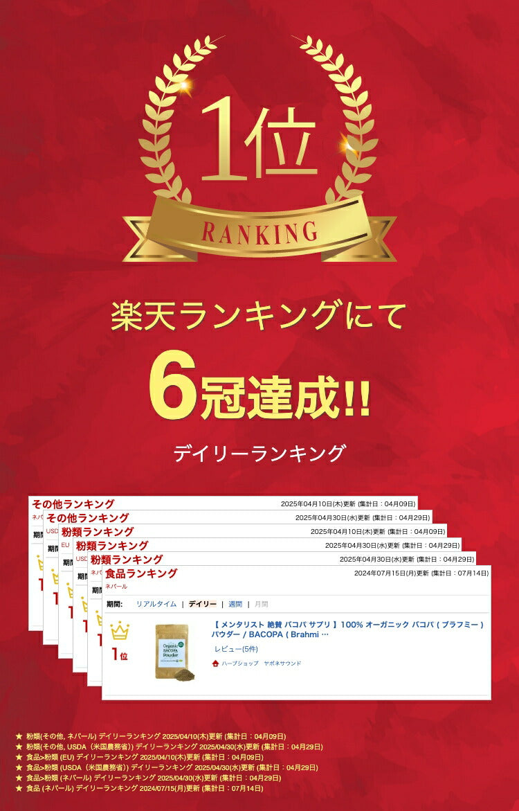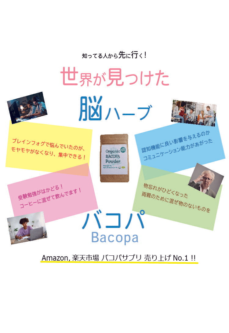 「国産以上の品質を生活に寄り添う価格で」をモットーに、日本初輸入の最高品質アーユルヴェーダハーブを取り扱うヤポネサウンド合同会社から「バコパパウダー/Bacopa Powder」が登場! 日本初輸入のヒマラヤ産欧米オーガニック規格品で、ダイレクトに作用するパウダータイプ。 1gのパウダーを作るのに100g以上のオーガニックバコパを使用。 1日3gを目安に朝食の後に水や牛乳などと一緒にまずは3か月を目安に飲んでください。 有名メンタリストも絶賛のハーブを高品質と、生活に寄り添う価格でお試しください。