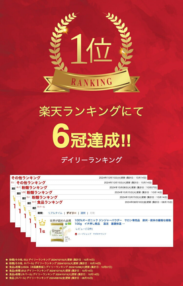 100%オーガニック ジンジャーパウダー サロン専売品 欧州・欧米の厳格な規格 100g イチ押し商品 温活 基礎体温 ハーブティー 生姜 生姜粉末 乾燥生姜 ショウガオール スパイス 漢方 エスニック